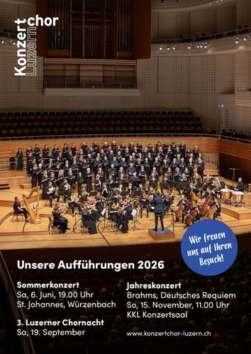 Am Sonntag, 15. November 2026 um 11:00 Uhr singt der Konzertchor Luzern im KKL Luzern Ein deutsches Requiem op. 45 von Johannes Brahms.