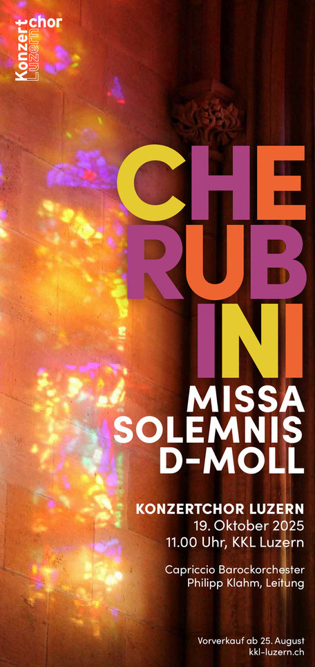 Der Konzertchor Luzern führt zusammen mit dem Capriccio Barockorchester am 19. Oktober 2025 im KKL die Missa solemnis Nr. 2 in d-Moll von Luigi Cherubini auf.